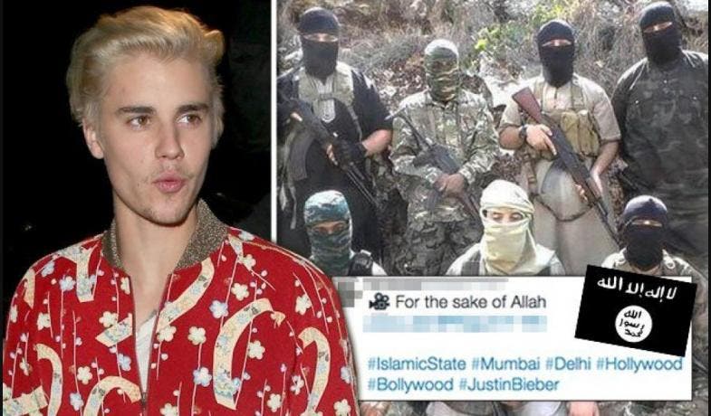Bajo el hashtag #JustinBieber, ISIS lanzó un video gráfico de 15 minutos de duración con el título "Un mensaje al Islam de occidente" donde se veía el asesinato de cuatro hombres posados de rodillas y con las manos atadas.