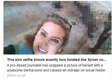 Una periodista siria, cercana al régimen de Bashar al Assad y conocida por registrar las masacres del Ejército y fotografiarse con soldados, desencadenó un escándalo al publicar una "selfie" en la que se la ve sonriente ante los cuerpos sin vida de supuestos rebeldes caídos tras una operación militar.